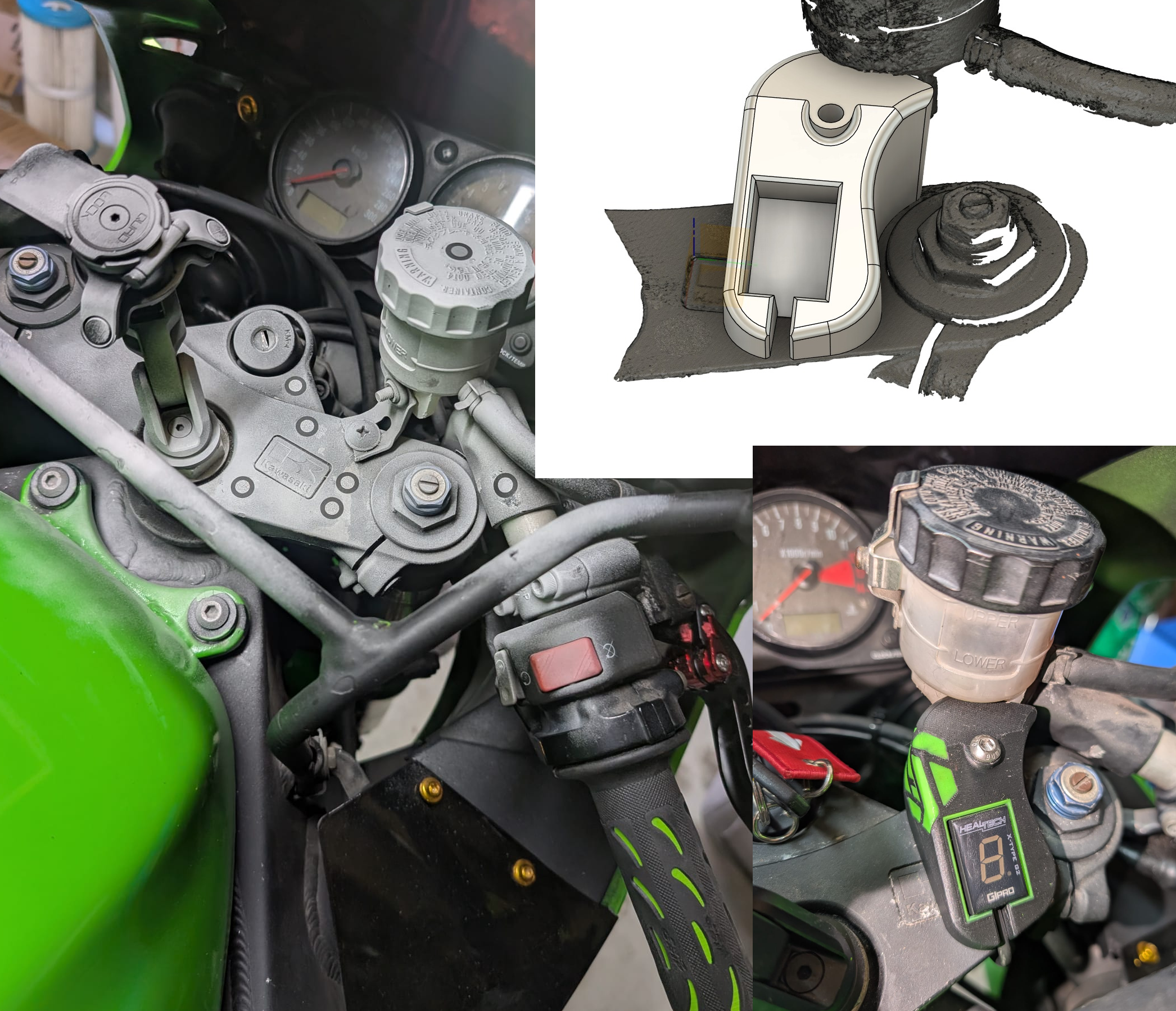 PrototypingDeveloping a streamlined, dual-purpose handlebar mount for a 2000s motorcycle using 3D scanning and CAD integration.